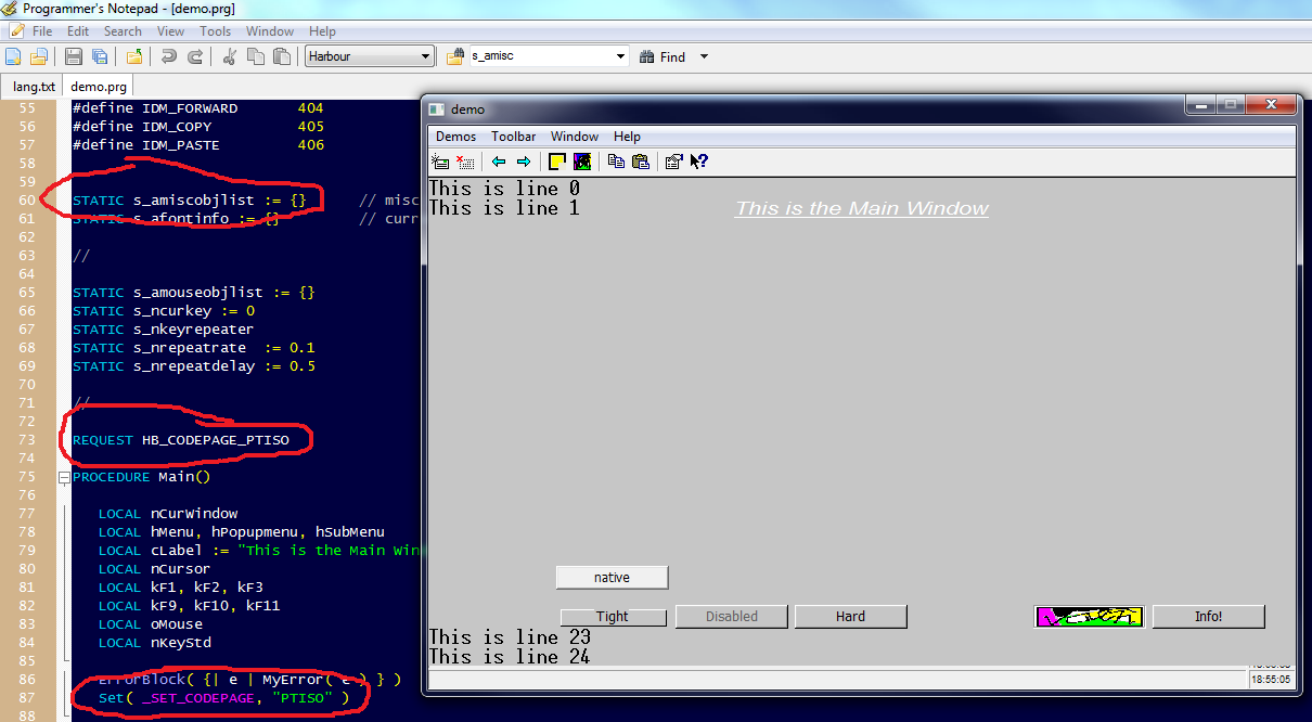 Aqui o fonte demo.prg alterado com codepage.