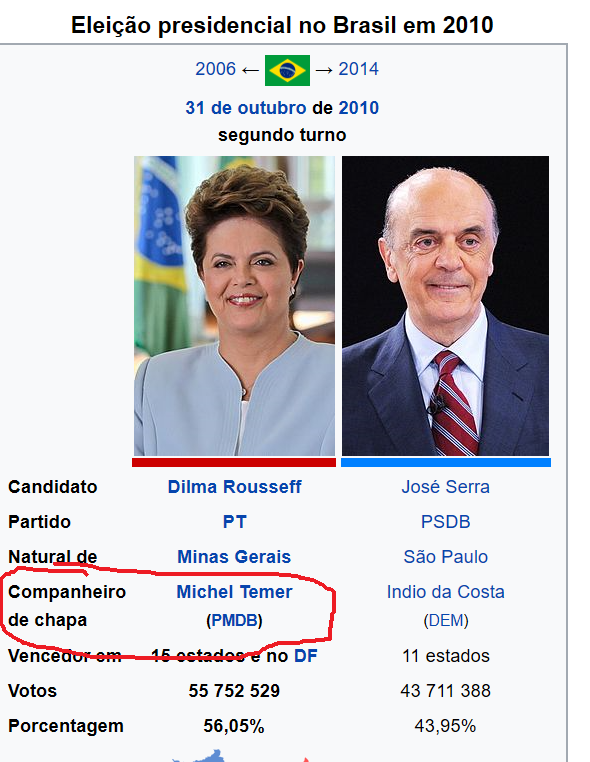 Michel Temer também com Dilma em 2010, isso eu não lembrava.
