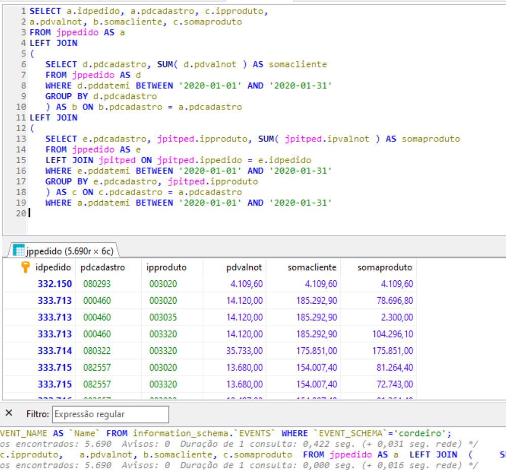 Já vém totalizado por cliente e cliente/produto, pronto pro relatório.