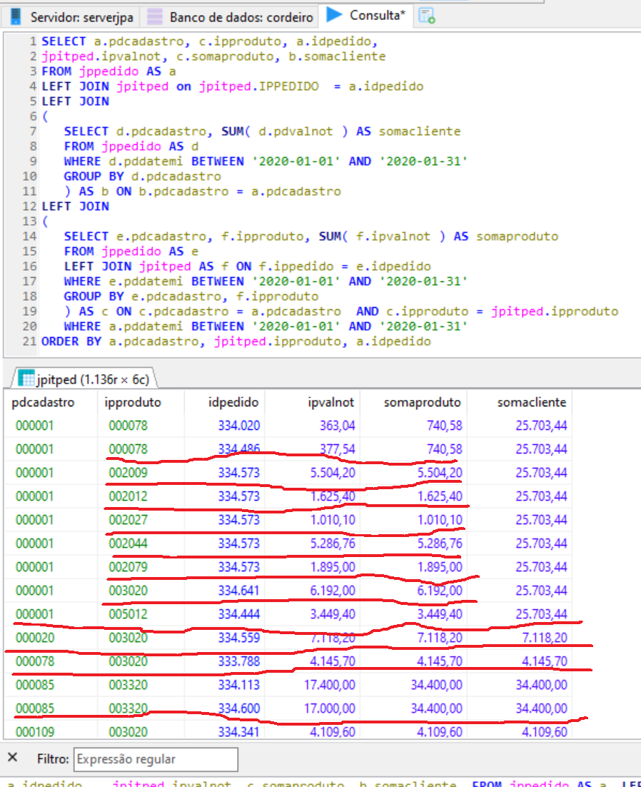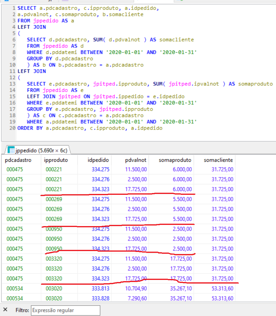 Se estou somando produto/cliente, então não é o mesmo que somar o pedido.