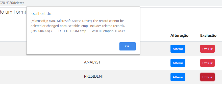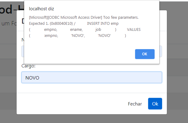 case 'ERRO': <--- Caso ocorra um erro na inserção