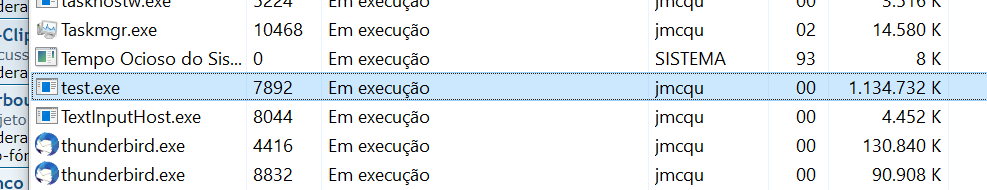 Antes da execucao de 'hb_gcAll()' -> Memoria = 625 016 Kb.