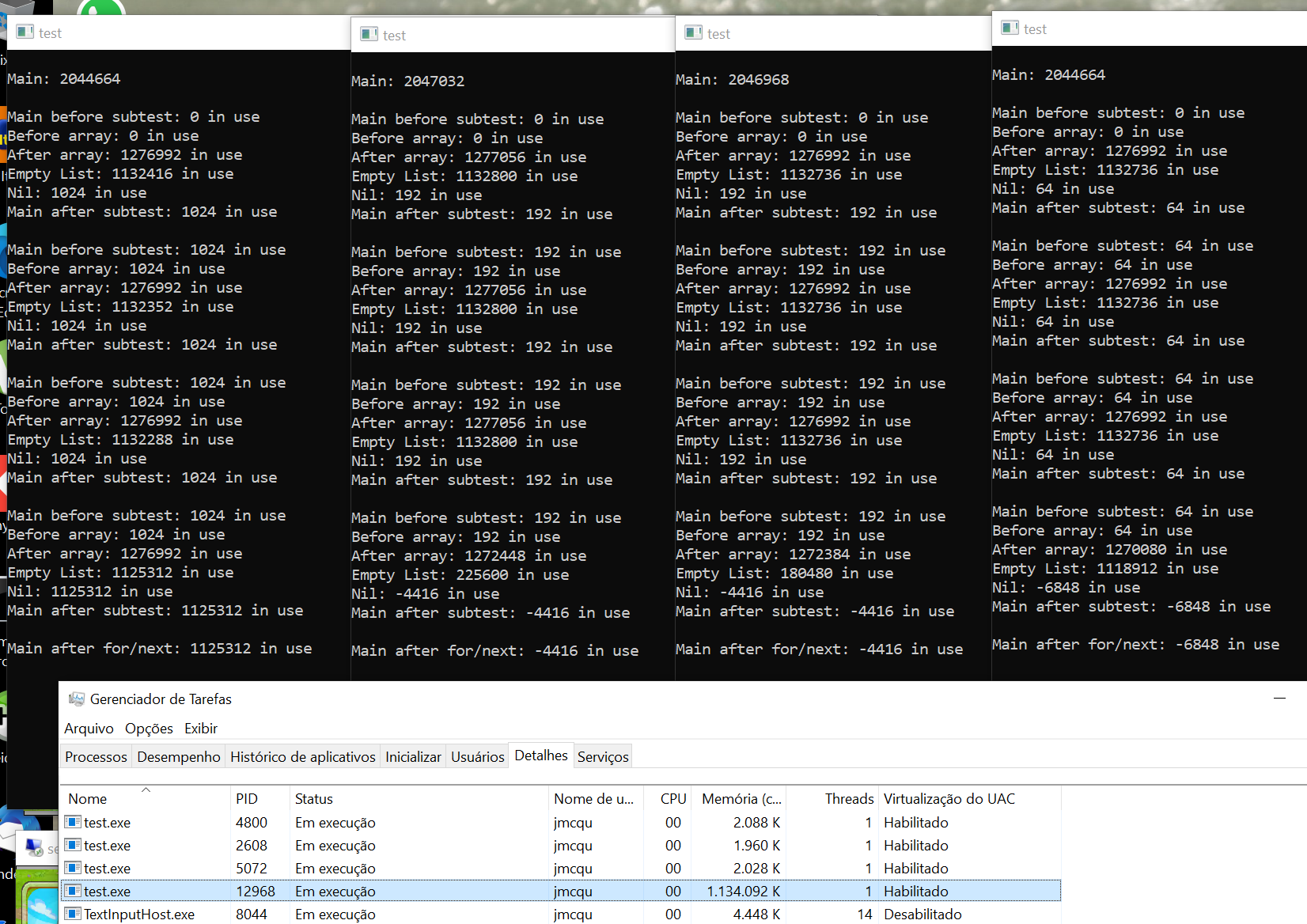 Antes da execucao de 'hb_gcAll()' -> Memoria = 667 724 Kb.
