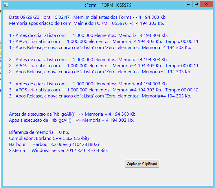Data: 09/29/22 Hora: 07:53:22 Mem. Inicial antes dos Forms -> 1 175 912 Kb.