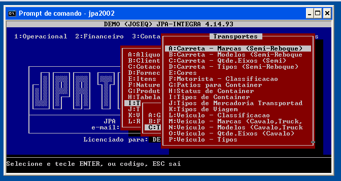 Uma única opção do menu principal se abre em tudo referente à transportes.
