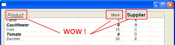 HEADERS {'Product','Stock','Supplier'} ;