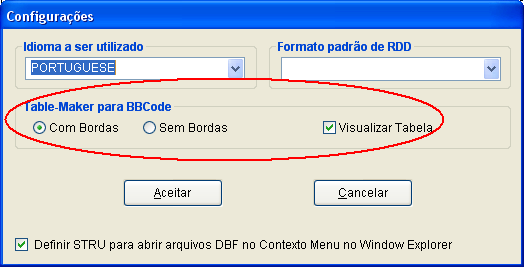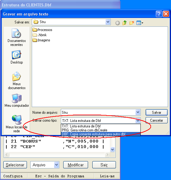 O "Configura" agora tem mais um item que permite acessar o STRU ao clicar no DBF pelo Window Explorer.