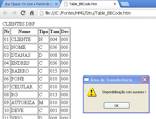 Todos estes recursos servem para facilitar a disponibilização de estruturas de DBFs no fórum.