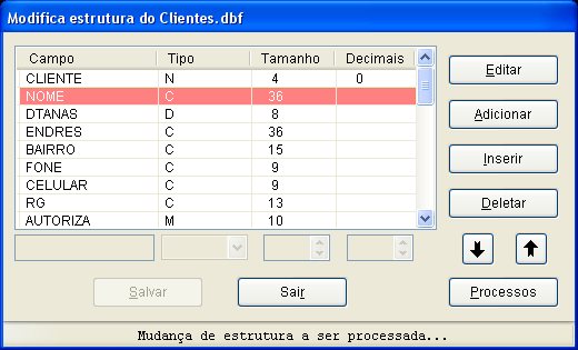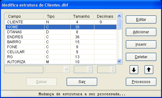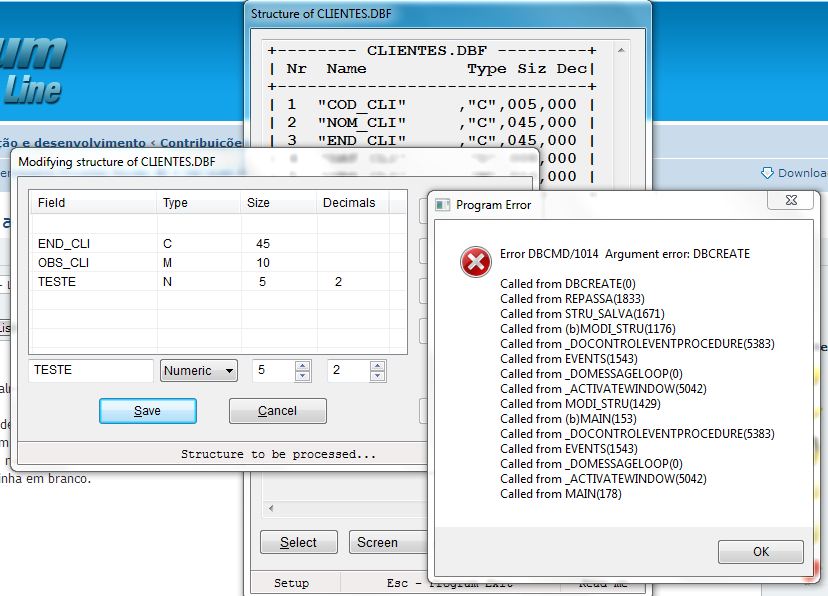 Notei outro problema, na rotina de alteração de estrutura (Modify):