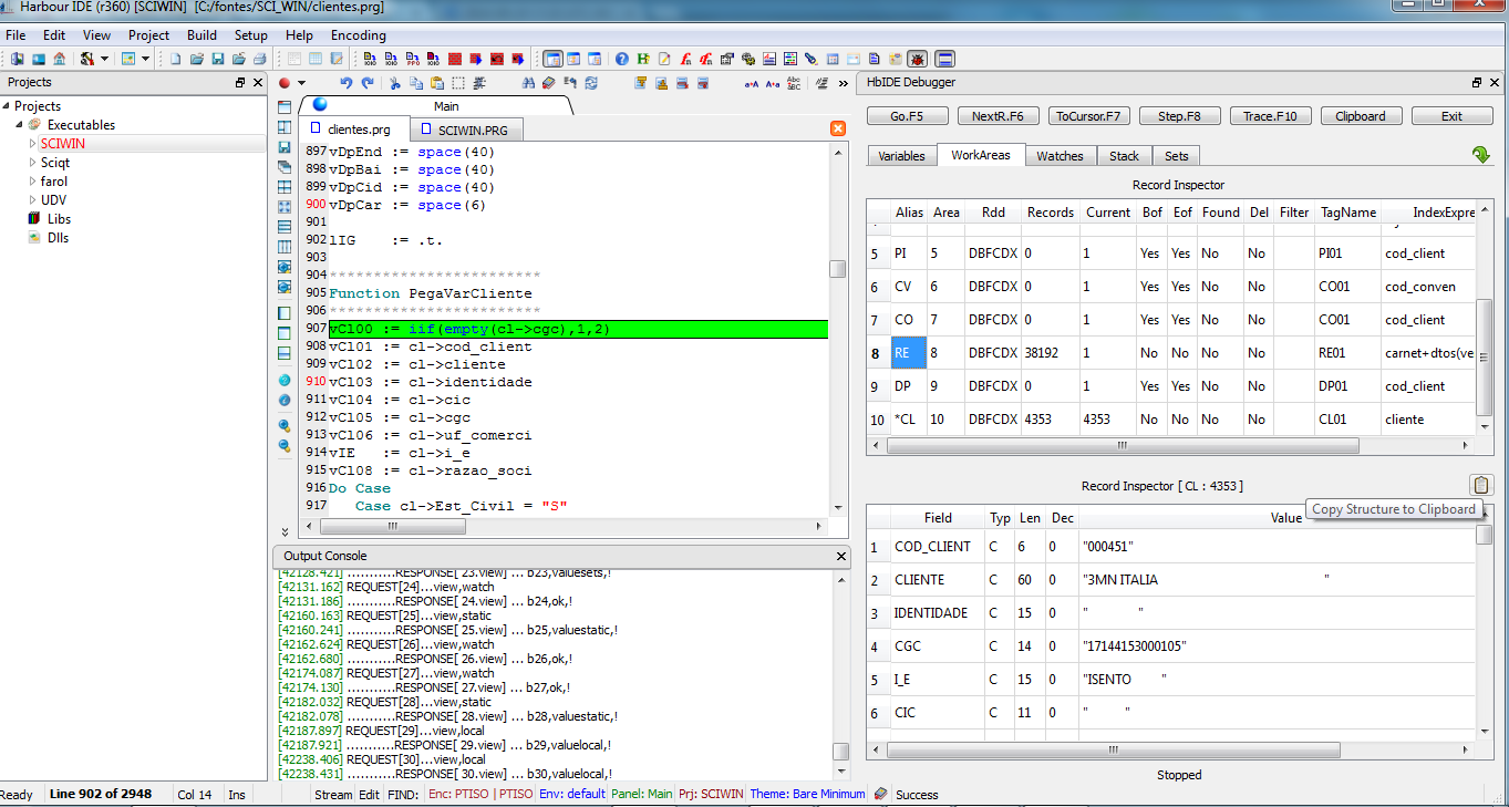 Agora com total controle dos DBF´s estruturas indices via debug.