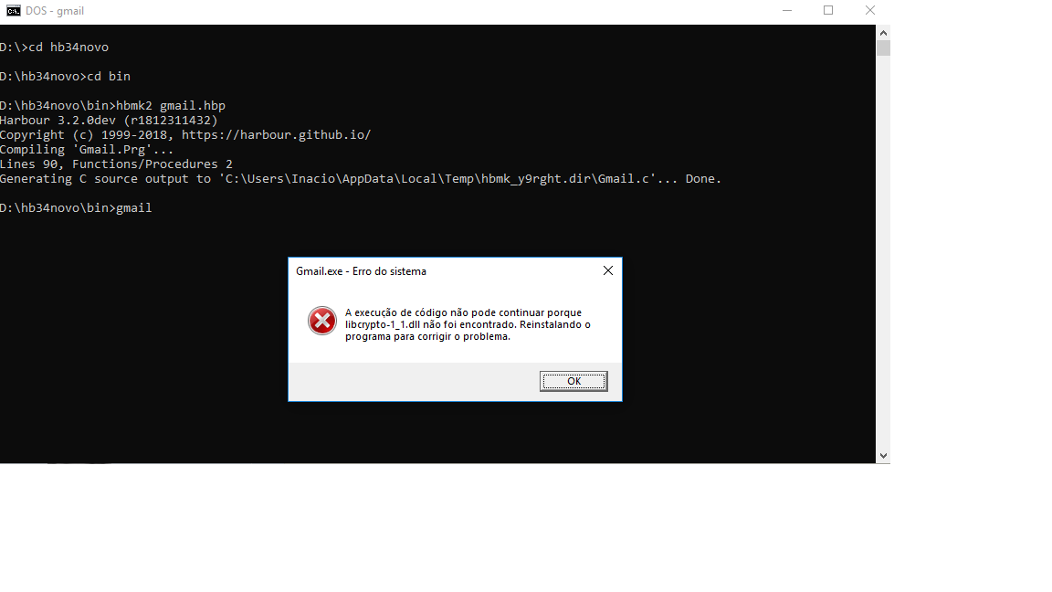 13-Digite apenas Hbmk2 Gmail.Hbp (sem colocar nenhum path adicional, a pasta já estará no path).
