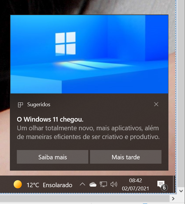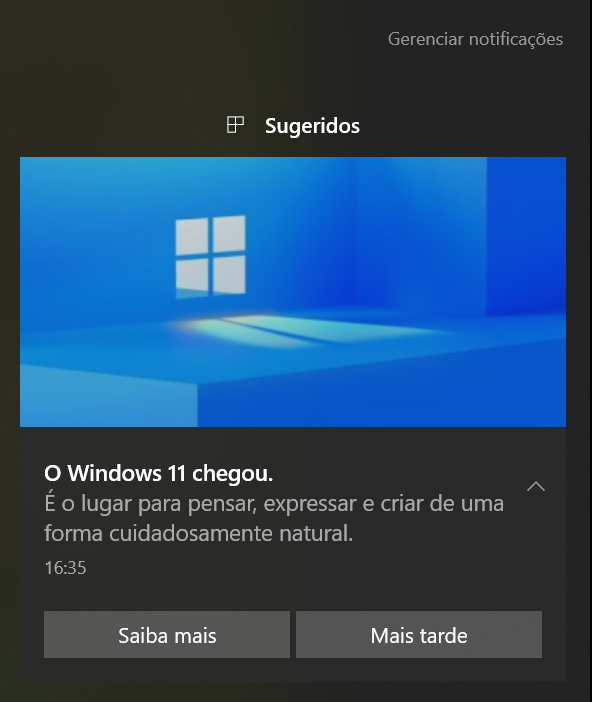 Estou falando sobre Windows 10, não sobre Windows 11.