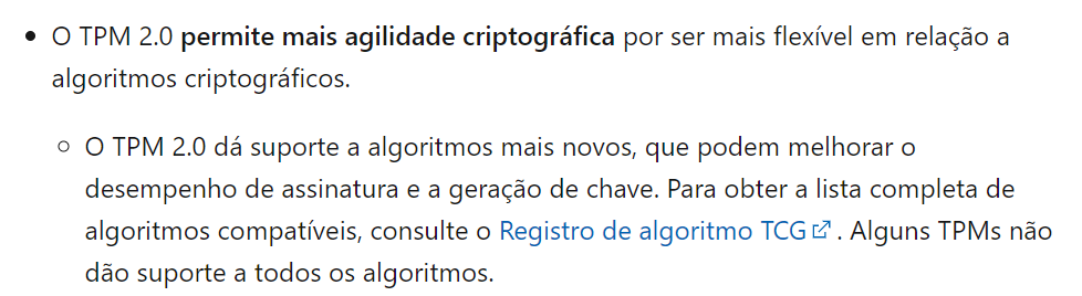 TPM parece ser criptografia feita por hardware ao invés de software.