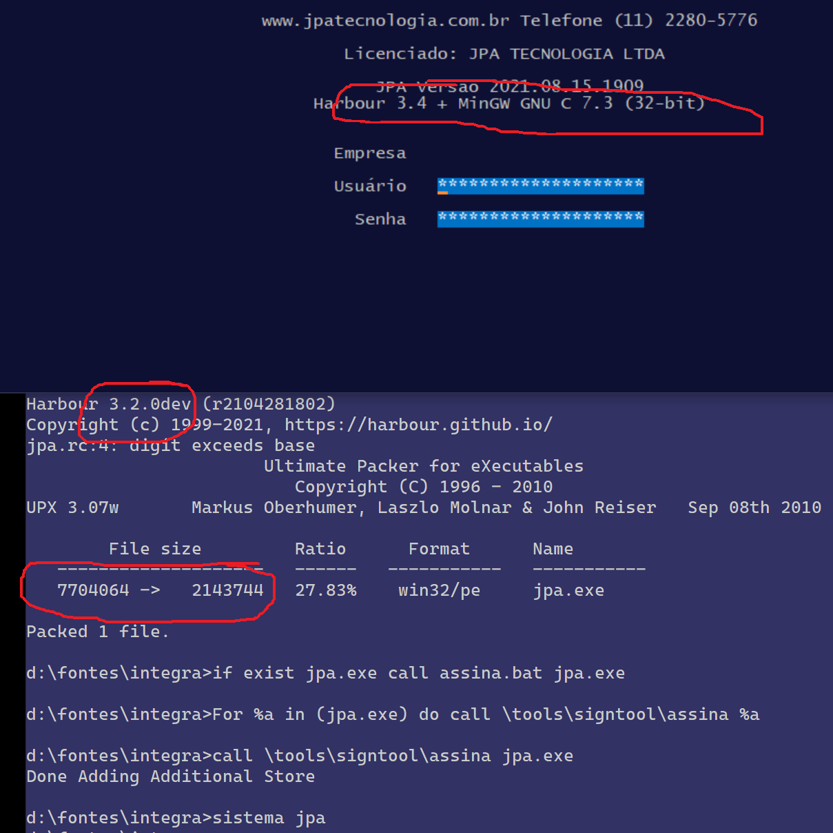 Mais um comprovante de que o EXE foi compilado com Harbour 3.2 e LIBs do Harbour 3.2.