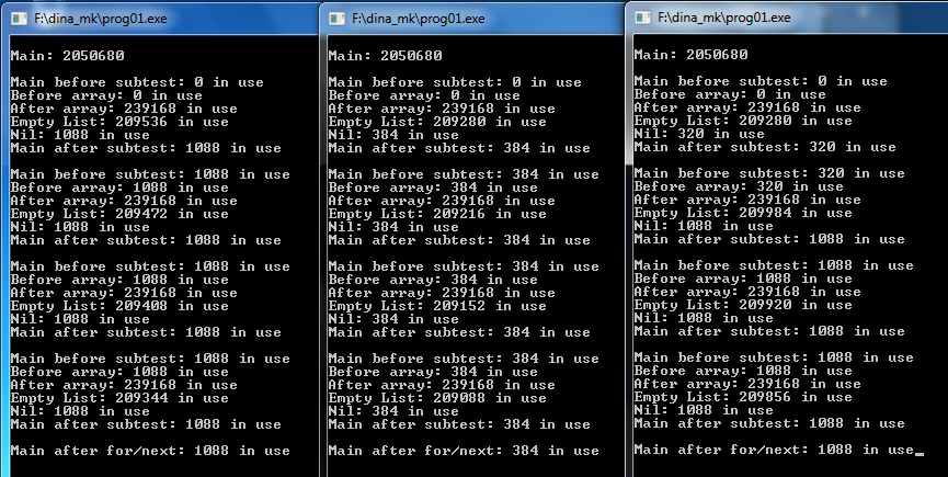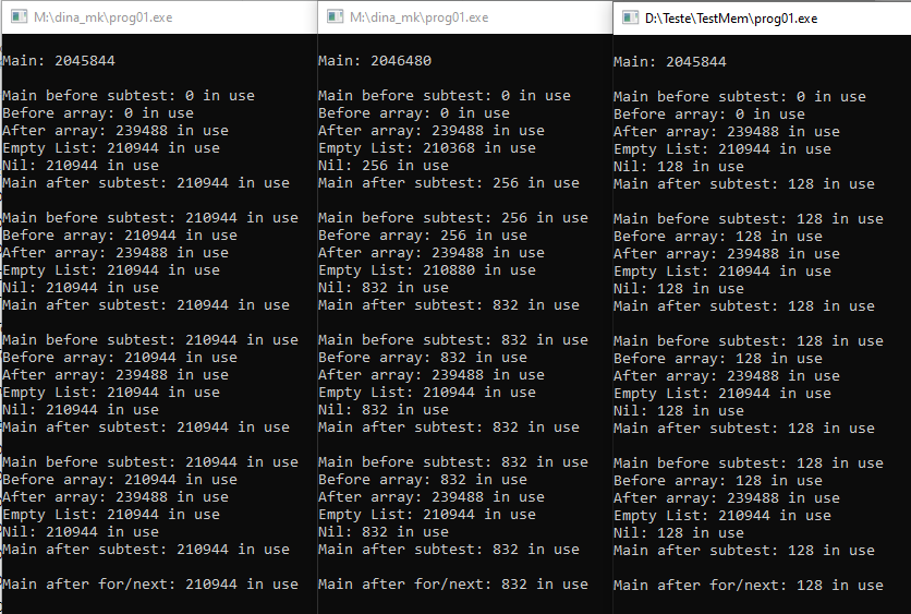 Aqui o programa teste do Quintas em um Win 7 64 Bits com 1 Gb de RAM