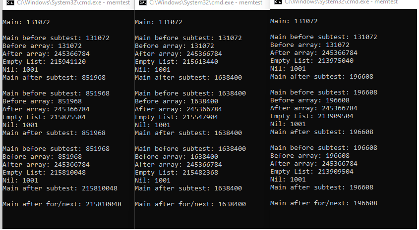 Aqui o programa teste do Quintas em um Win 10 64 Bits com 3 Gb de RAM