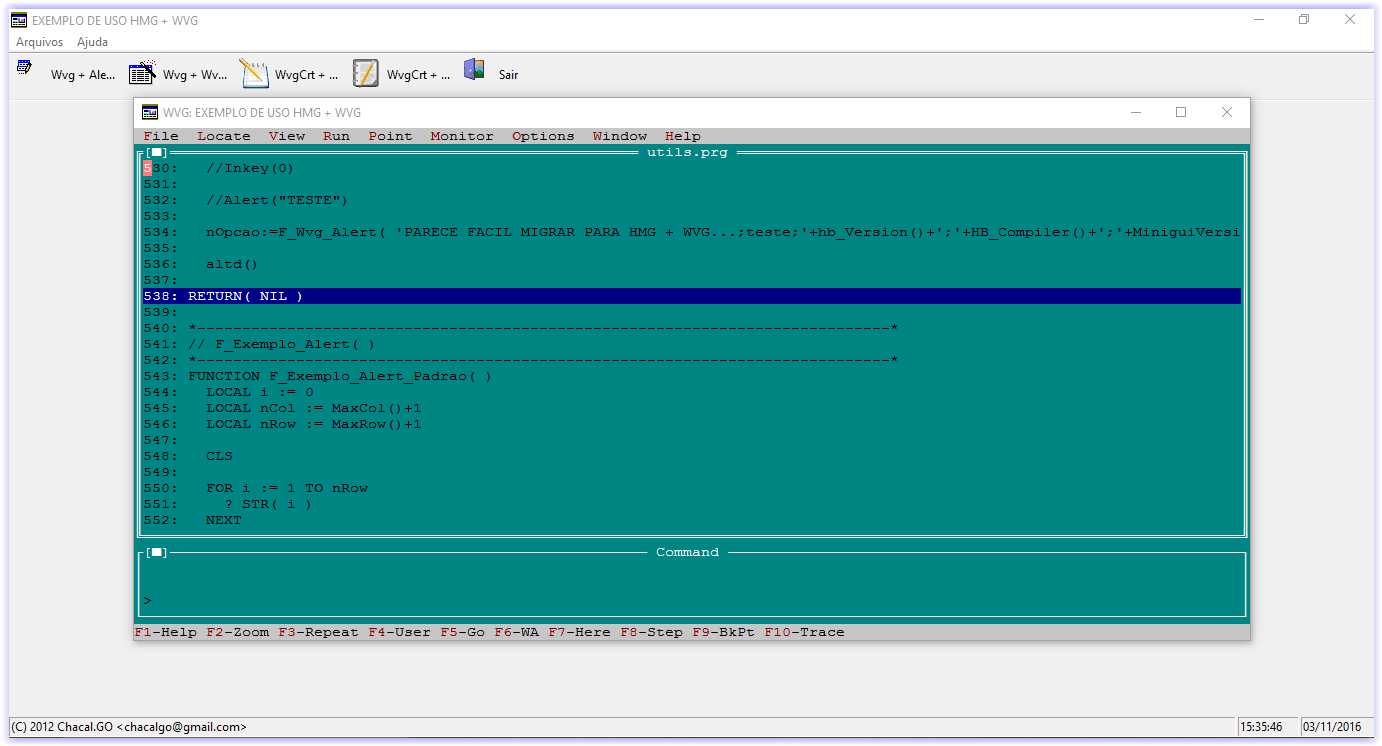 Vou fuçar aqui até descobrir como compilar 2 GTs, por enquanto, e, no meu caso as GTWIN + GTWVG ou vice-versa, para poder usar os recursos gráficos da HMG e da GTWVG ao mesmo tempo. Claro, que, quando me refiro ao mesmo tempo, é, o princípio que já mencionei: