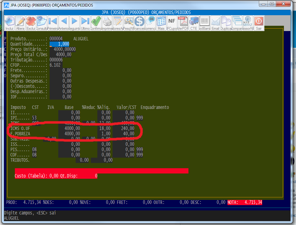 Nota: Ainda bem que estou usando 40 linhas x 132 colunas!! Cabem até os impostos nacionais.... rs