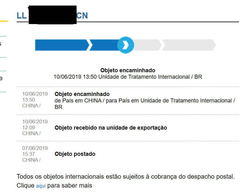 Só essa da taxa postal, que parou lá em Curitiba, e também veio uma carta dos correios avisando sobre pagar a taxa postal que eu já havia pago... kkkk (consta no rastreio que a taxa foi paga).