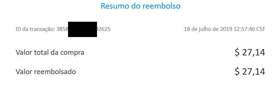 O valor vai retornar ao cartão de crédito, que foi a forma de pagamento usada, nas próximas 48 horas.