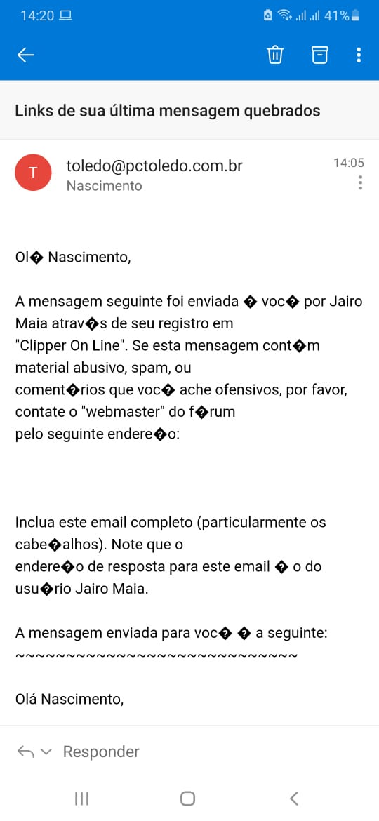 Jairo Maia escreveu:PS: Se for verdade o que você diz me acusando que denunciei sua mensagem, mostre a cara, seja honesto, mostre o e-mail que enviei a você aqui.
