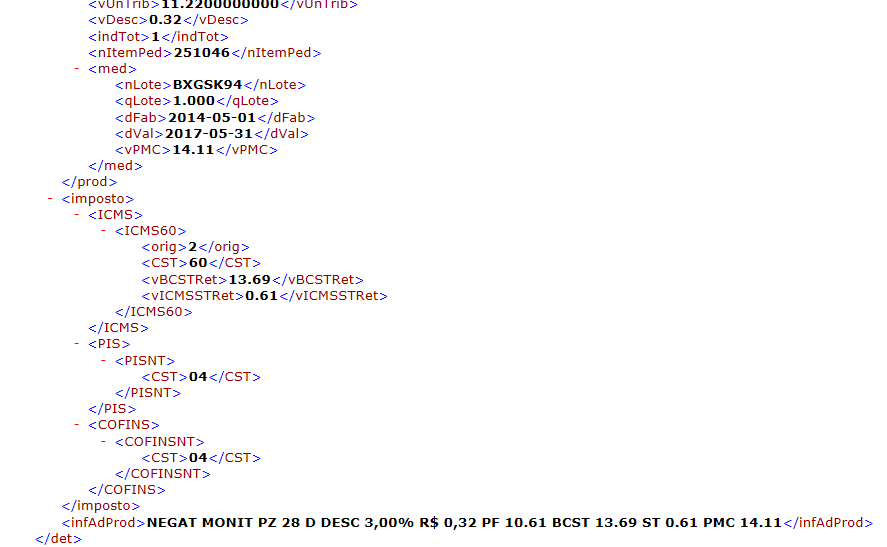 Abaixo figura do XML q baixo via Dll q estou usando de base para comparação.