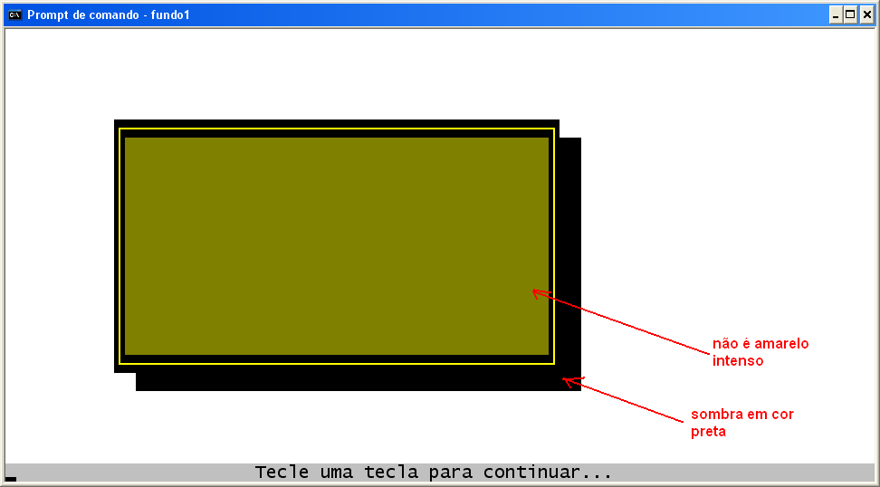 Pior Alexandre que funciona em Clipper, mas tem que colocar o SetBlink( .F. ), eis o código exemplo e tela:Pena que a sombra fica preta e não cinza como apareceu no meu primeiro exemplo. A cor amarela do quadro interno também naõ ficou com amarelo intenso.