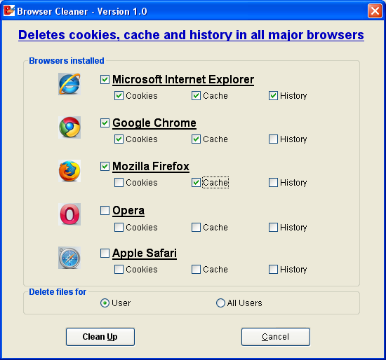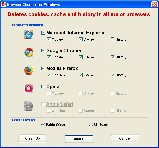 A primeira fase, já está disponível na seção de Downloads em: BCleaner - Remove Cookies, Cache e History dos principais navegadores