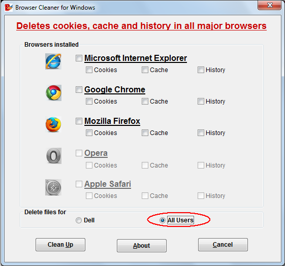 Esta opção de "All Users" irá permitir executar a limpeza em todos os usuários cadastrados no Windows dessa máquina.