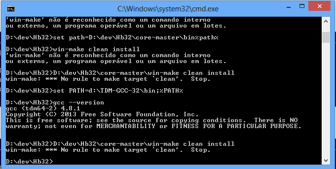 Eu sempre baixava a instalação já compilada. Na tentativa de seguir os passos do teu tutorial, encontrei alguns problemas. Criei a pasta Hb32 no meu drive D: