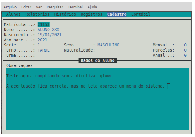 3. Já tentei usar outras codificações no linux para tentar aceitar os acentos mas não deu certo.