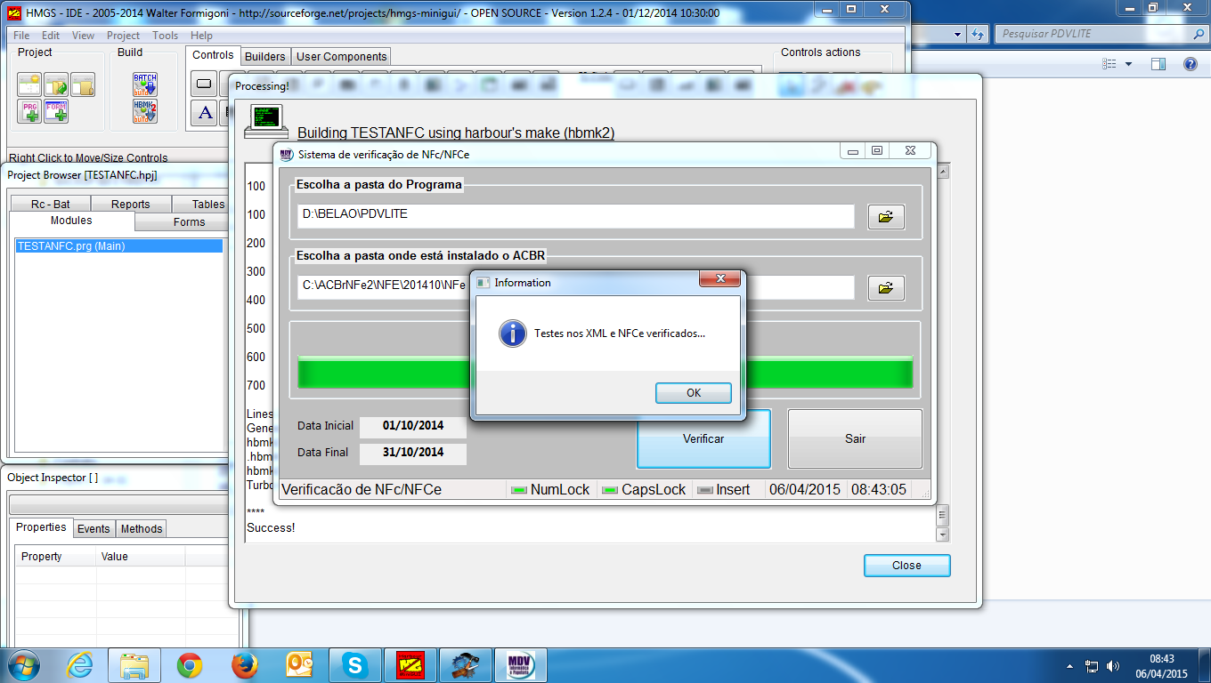 MSGINFO('Testes nos XML e NFCe verificados...')
