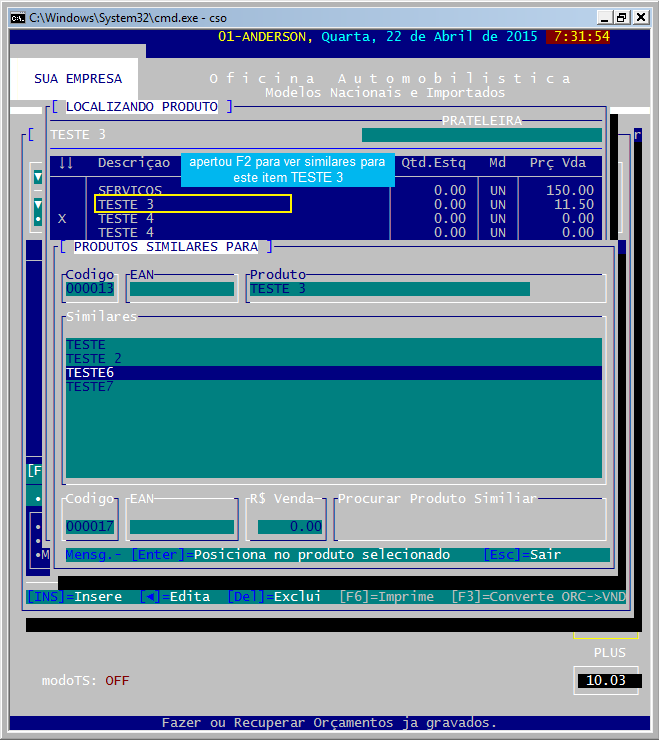 -Ao posicionar sobre um item original que tenha similares a lista será mostrada permitindo que eu lance o similar na venda ao escolher.