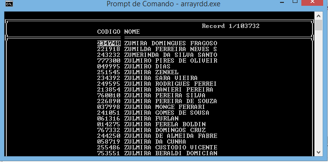 porem ele não mostra o nome completo das pessoas a partir dos valores zerados, eu tenho somente um carácter para o campo nome.