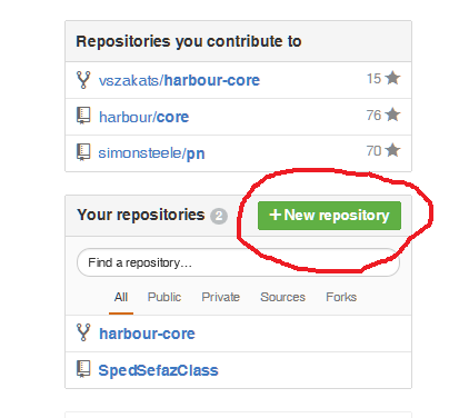 Uma vez criada a conta, do lado direito, embaixo, aparece a opção de criar repositório.