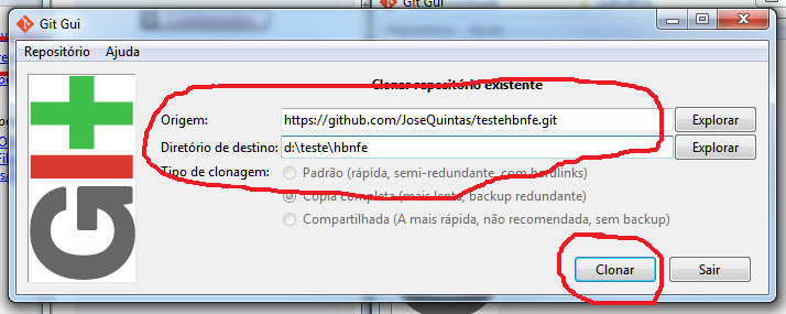 Se clicar no clonar, vai abrir a tela pra baixar o software.