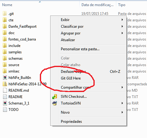 Vai numa pasta, clique da direita, GITGUI HERE.