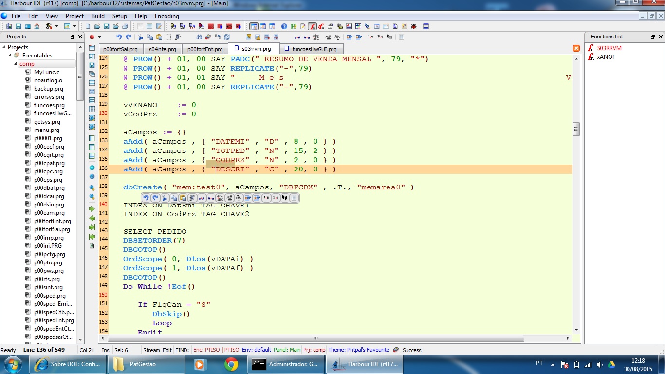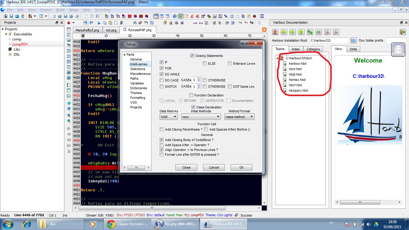 Tentando usar a HBide (r417) e abandonar meu editor TextPad a fim de desfrutar de algumas facilidades de uma ide feita para xbase, porém algumas dificuldades: