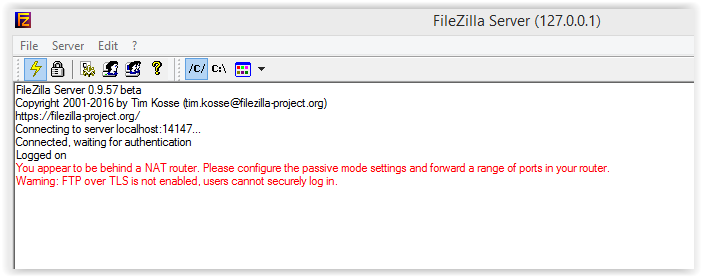 Warning: FTP over TLS is not enabled, users cannot securely log in.