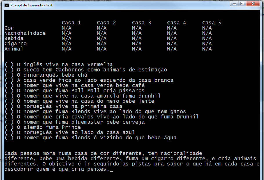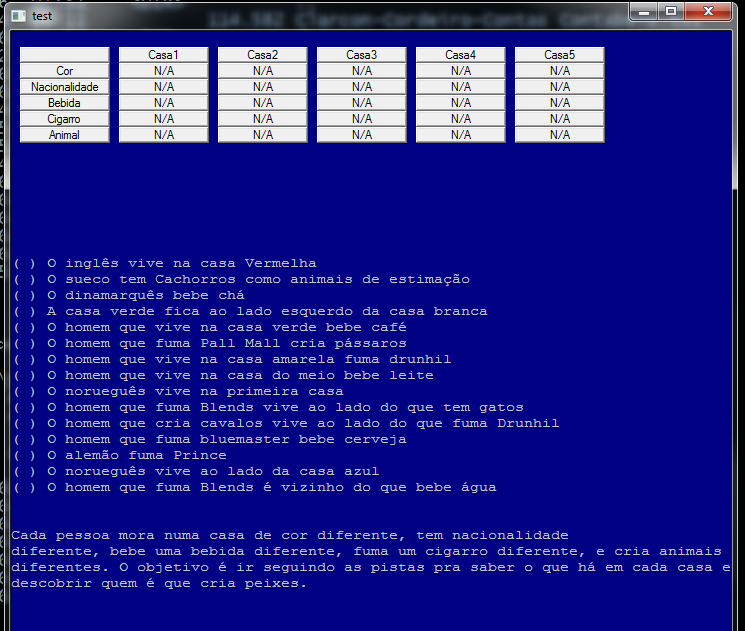 Mas... será que não está faltando um enunciado? ( o primeiro seria: "O Norueguês vive na primeira casa.")
