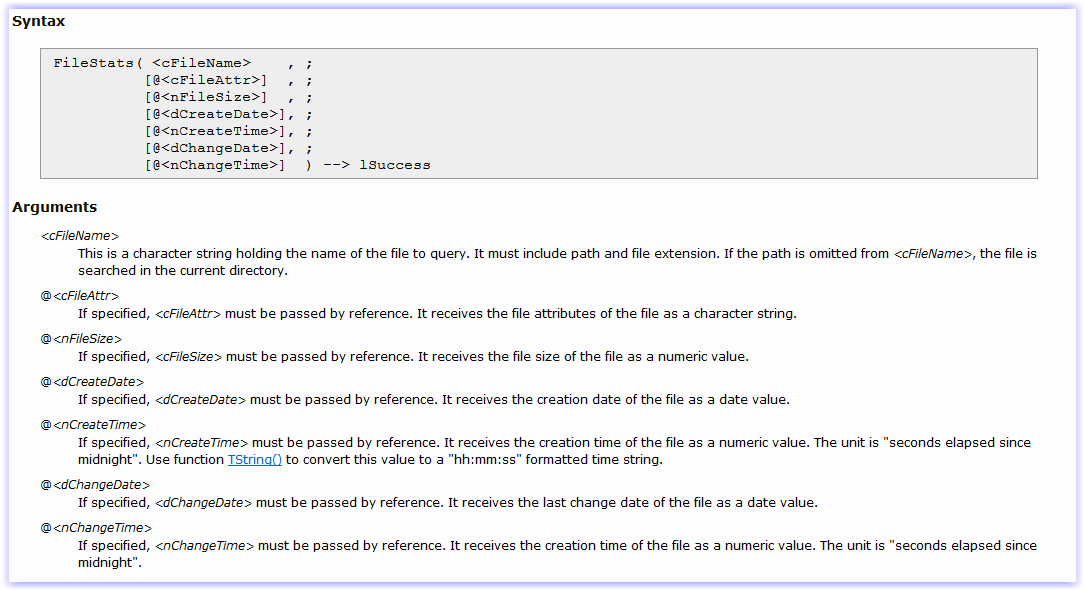 FileStats( "F:\UPDATE\SISTEMA.EXE", , , , , @dChangeDate)