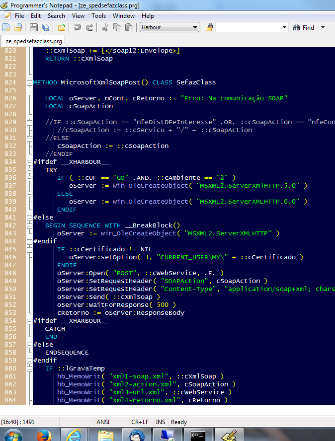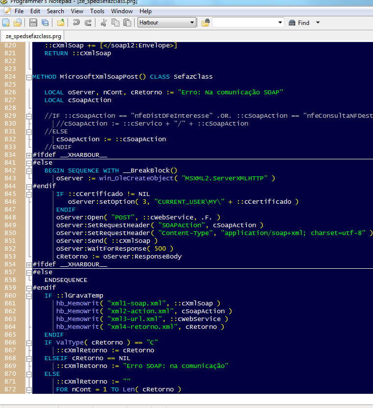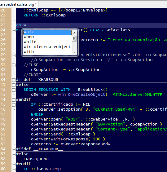 Repare que os blocos ref. xHarbour agora ficam escondidos.