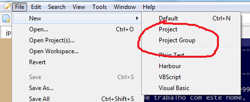 Criar projeto, ou grupo de projetos.