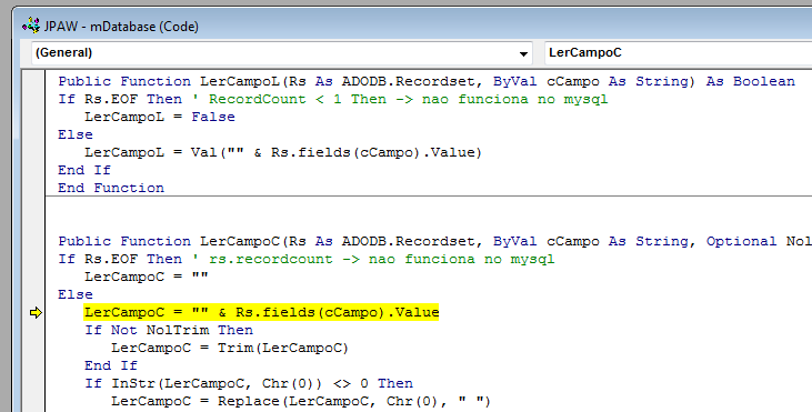 Um outro recurso interessante na IDE do VB6 é a seguinte, que seria interessante num editor: