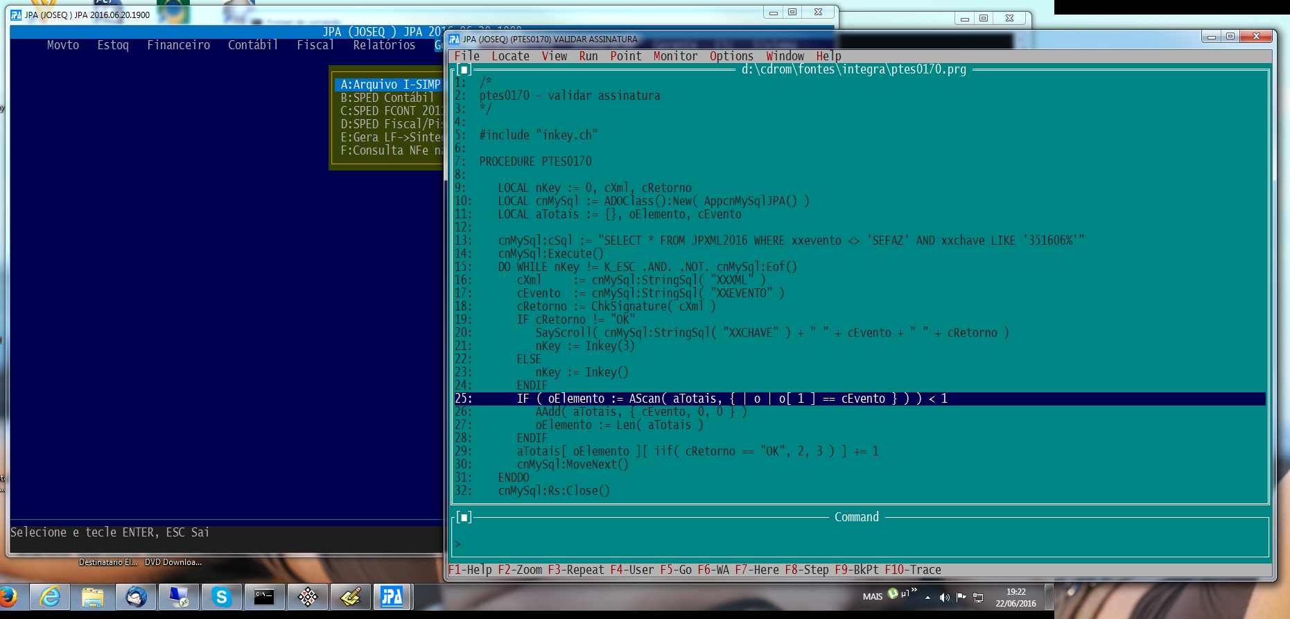 Chamei o aplicativo, acionei a opção no menu chamando o módulo PTES0170, aonde coloquei debug.