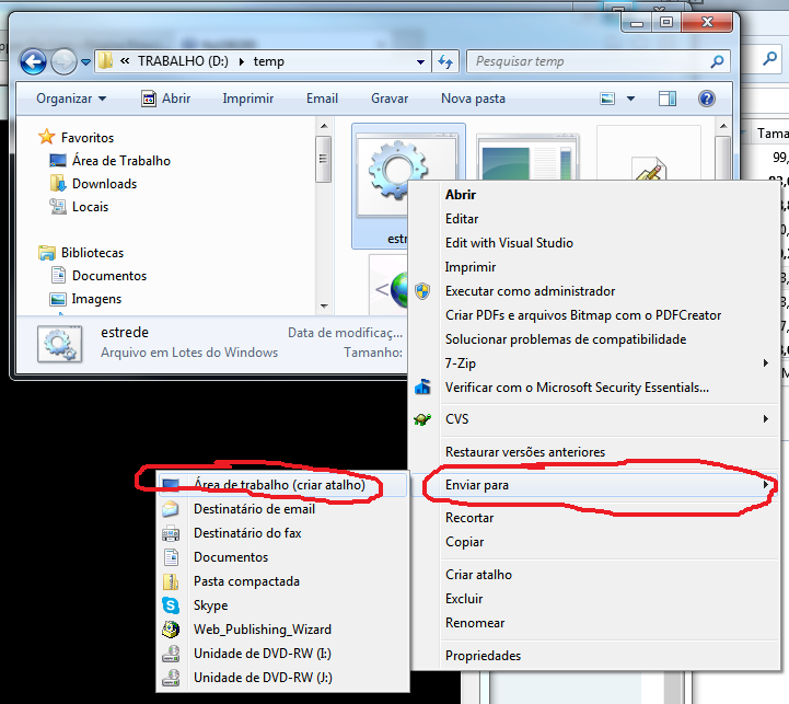 Abre Z:, posiciona no BAT, clique da direita, enviar para área de trabalho - criat atalho