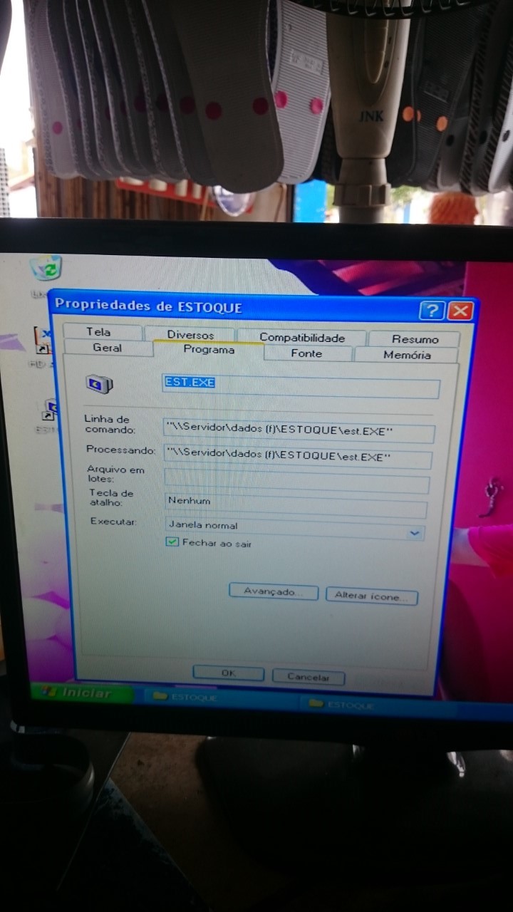 após configurar o que foi passado fiz alguns teste, só falta mapear a unidade que vou fazer em seguida, tirei algumas fotos, o diretorio do servidor onde tudo funciona é \\servidor\dados (f)\estoque e o executavel chama est.exe