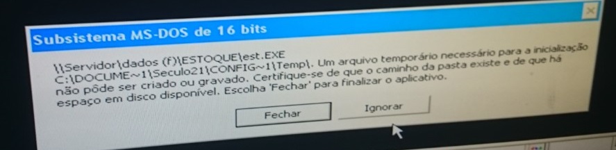 Mensagem esquisita, porque parece falta de espaço em disco.