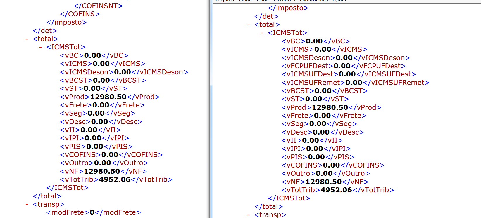 É até bom conferir esse bloco de totais na nota autorizada pelo ACBR.