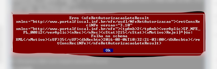 MsgExclamation( "Erro " + oSefaz:cXmlProtocolo )